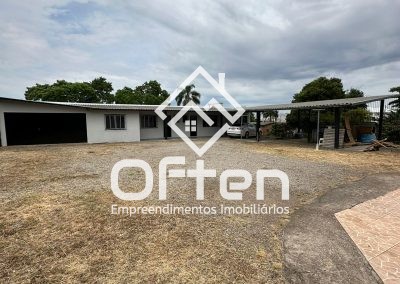 Composta de quatro dormitórios, sendo um suíte, sala de estar com lareira, dois banheiros, hall de entrada, ampla área de serviço, churrasqueira, fogão campeiro e garagem.