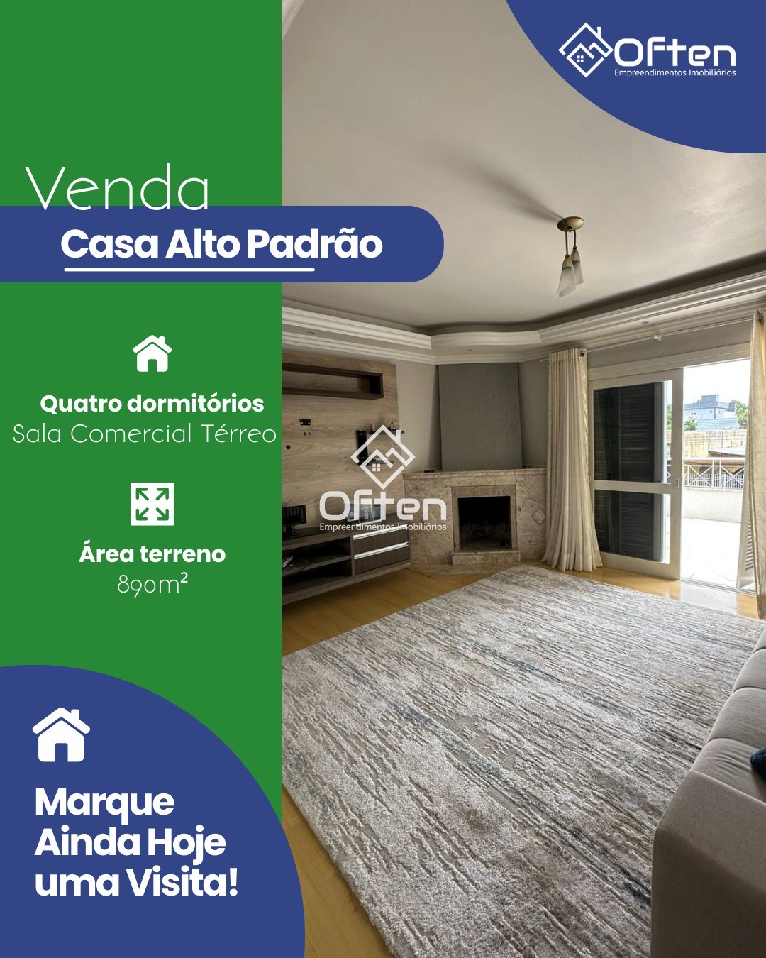 Casa alto padrão, com amplo terreno, sacada frente e lateral, possuindo sala comercial no térreo já com sua rentabilidade.